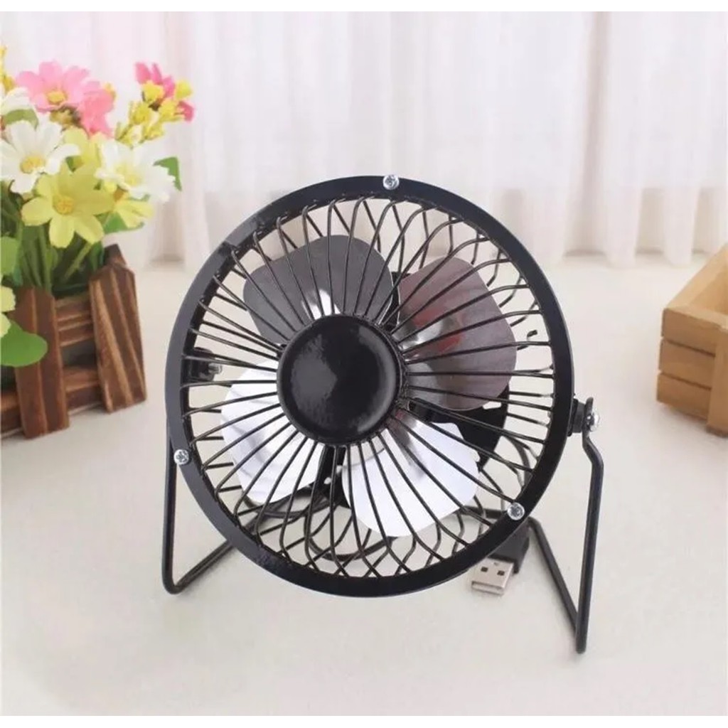Ventilador de Mesa Metal Portátil Preto Mini USB 15 cm 4 Pás Veicular Escritório