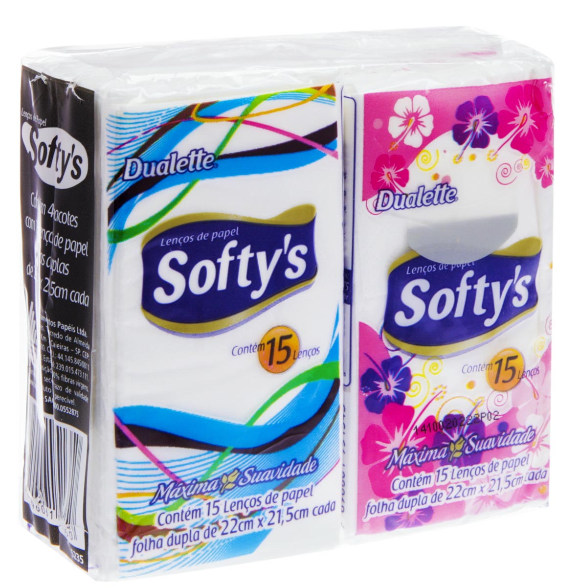 Lenço de Papel Softy's Bolso 4 Pacotes com 15 unidades cada