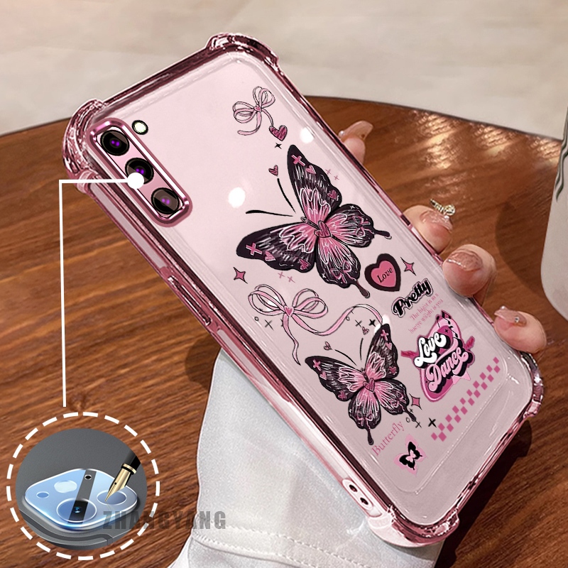 Capa Para Samsung S20 fe Quatro Cantos silicone anti Queda Caso De Telefone Galvanoplastia Estética Borboleta Novo desig