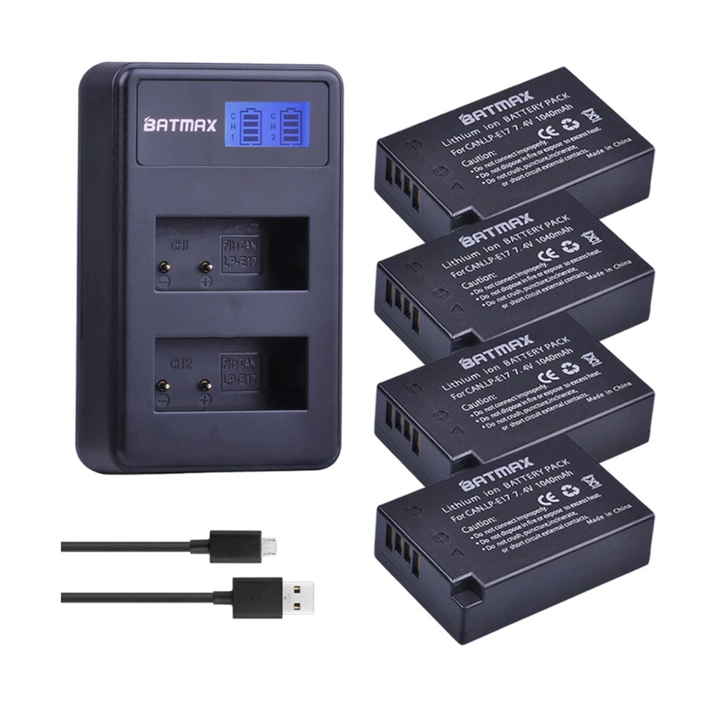 Kit 4 Baterias Canon + Carregador Duplo Batmax Lp-e17 T6i T7i Sl2 Sl3 Envio Imediato