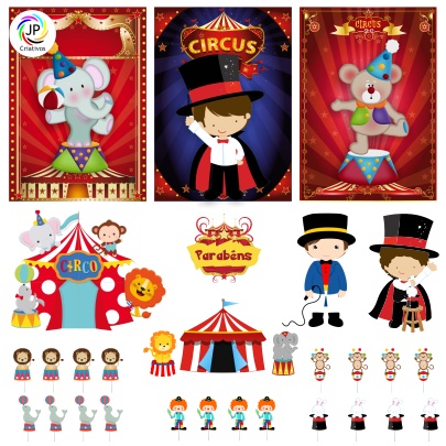Circo Menino Kit Decoração Festa Pronta Só um bolinho *78 itens* Topo de Bolo Personalizado