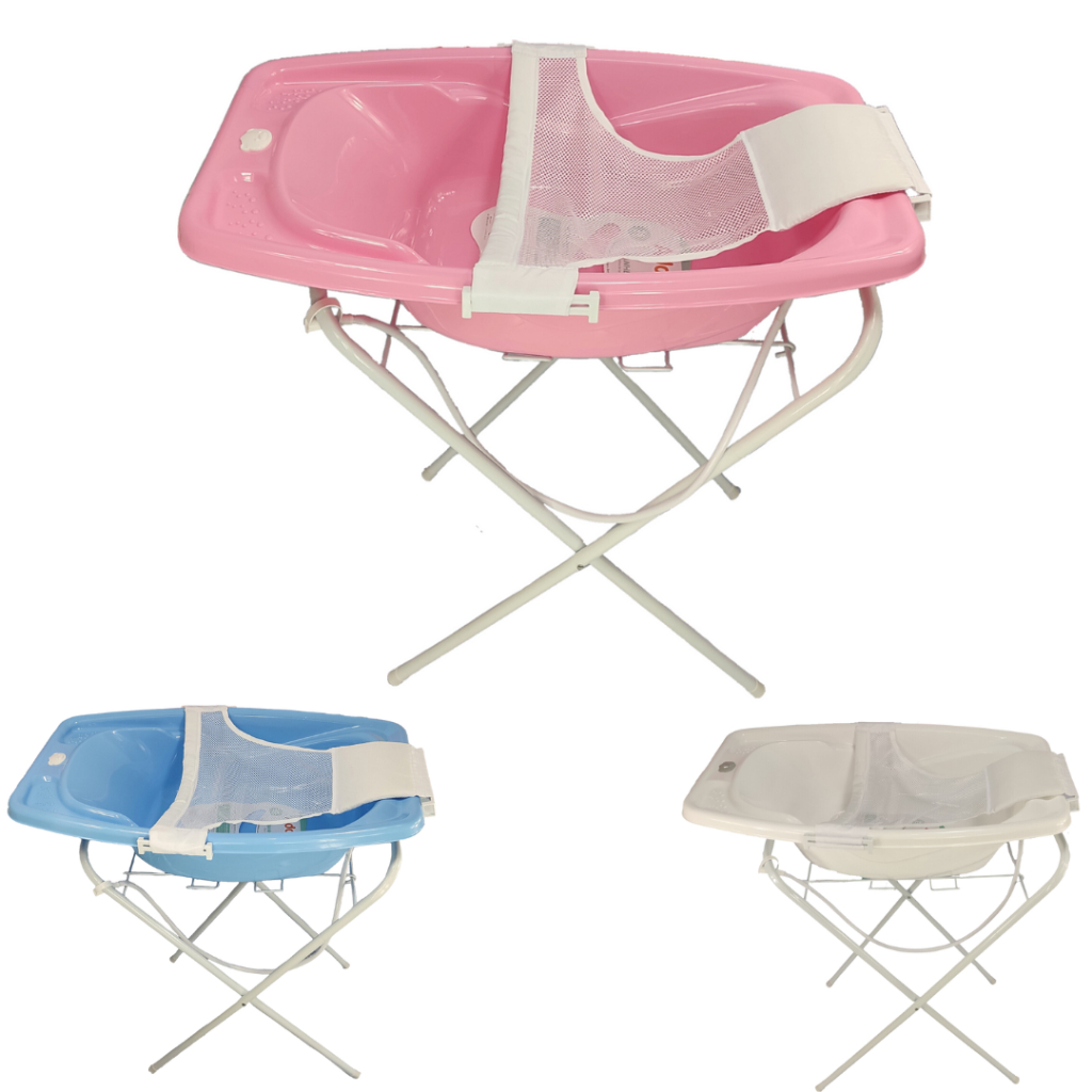 Kit Suporte de Banheira + Banheira de Bebê 25 Litros + Rede banheira de Bebê - Várias Cores