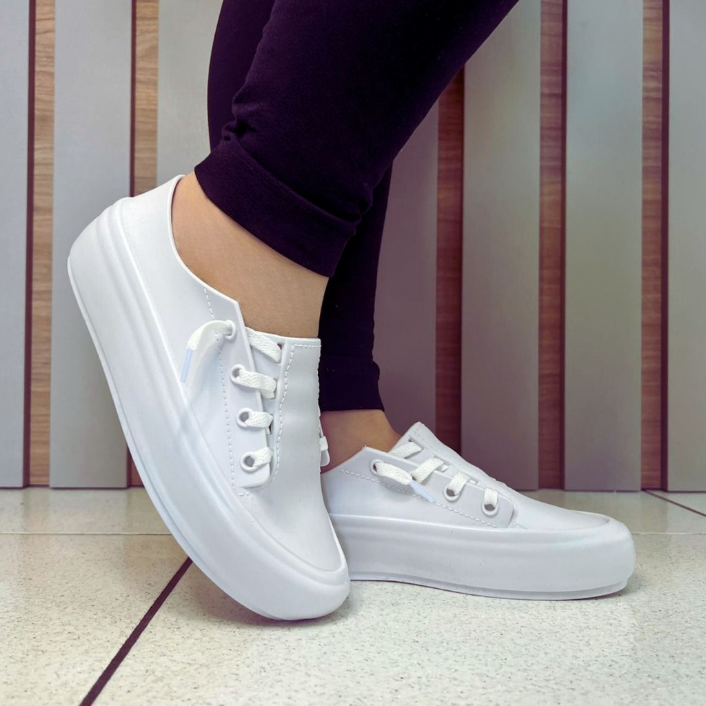 Sneaker Slip On Feminino Tênis Casual Versátil Sola Alta Flat Emborrachada Confortável Leve Branco