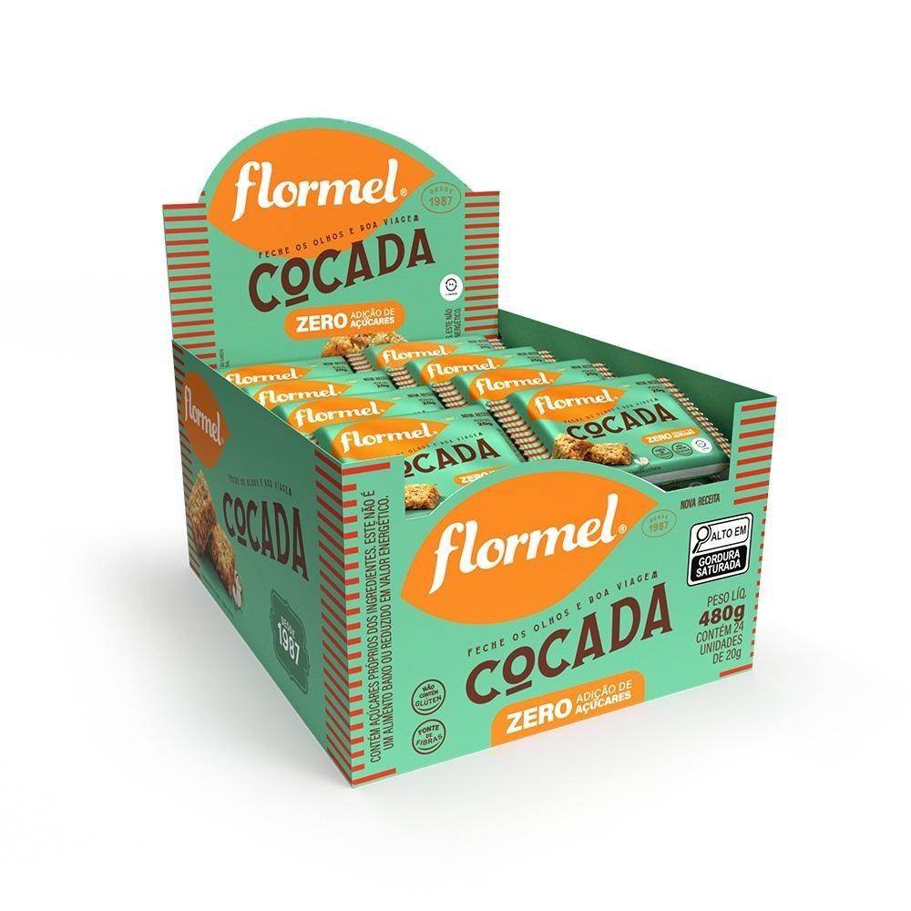 Tablete De Cocada, Zero Açúcar Flormel Caixa com 24 unidades de 20G cada