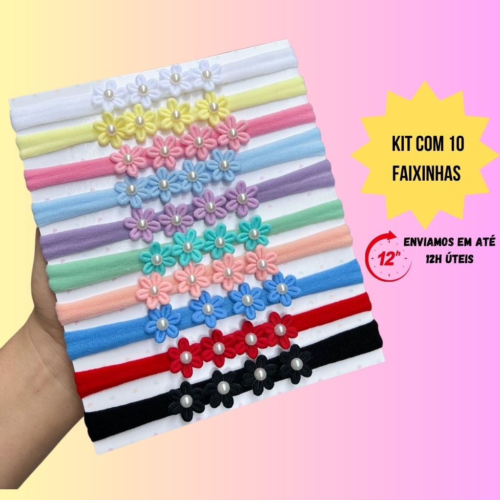 Kit 10 Faixinhas Tiara para Bebê com Flores Laços Lacinhos Menina Rn Maternidade