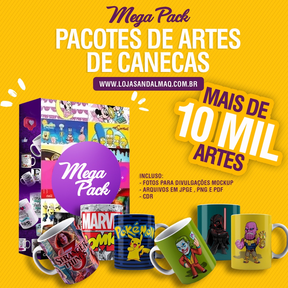 Pack com 10.000 Arquivos com Artes de Caneca para Sublimação