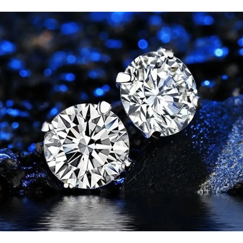 Brinco Masculino Pedra Zircônia Redondo Brilhante Banhado A Prata 925 Par Cravejado