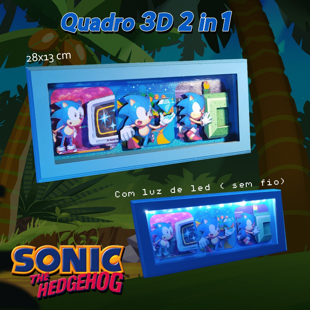 Quadro 3D + Luminária LED SEM FIO - Sonic The Hedgehog [LANÇAMENTO EXCLUSIVO]