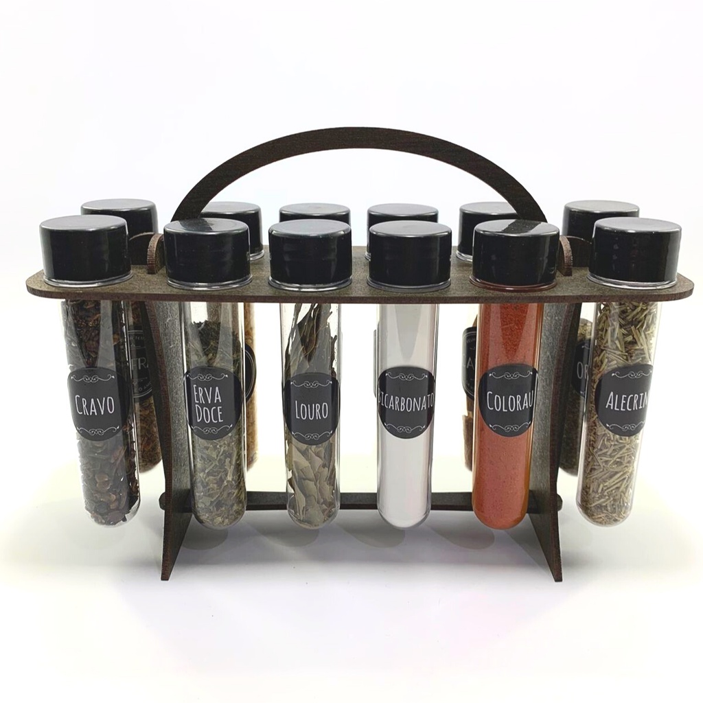 Kit Porta Tempero e Condimentos Material MDF Decoração Cozinha 12 Tubos + 18 Etiquetas de Tempero de BRINDE