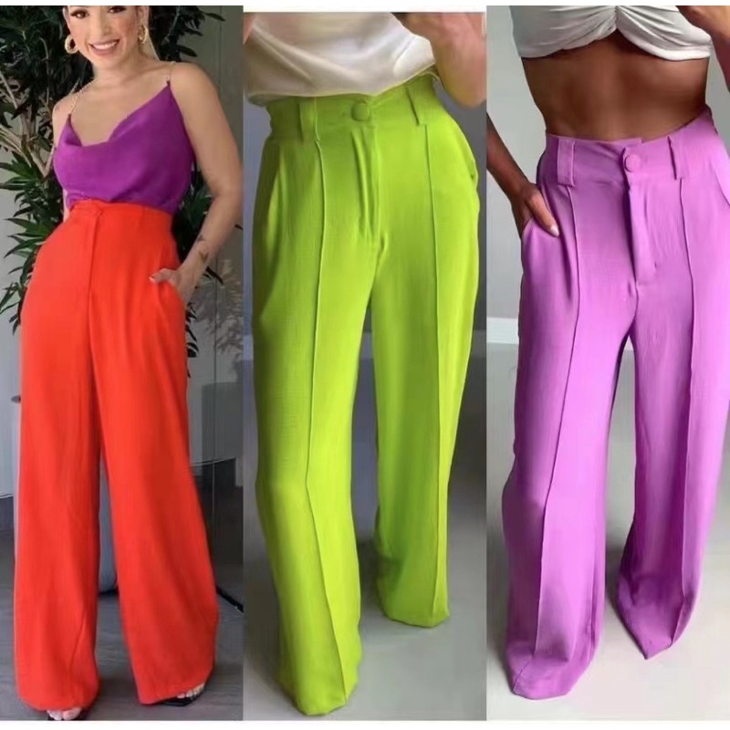 Calça Pantalona Duna cintura alta tecido De Duna estilo alfaiataria várias cores disponíveis - com zíper e botão forrado no próprio tecido