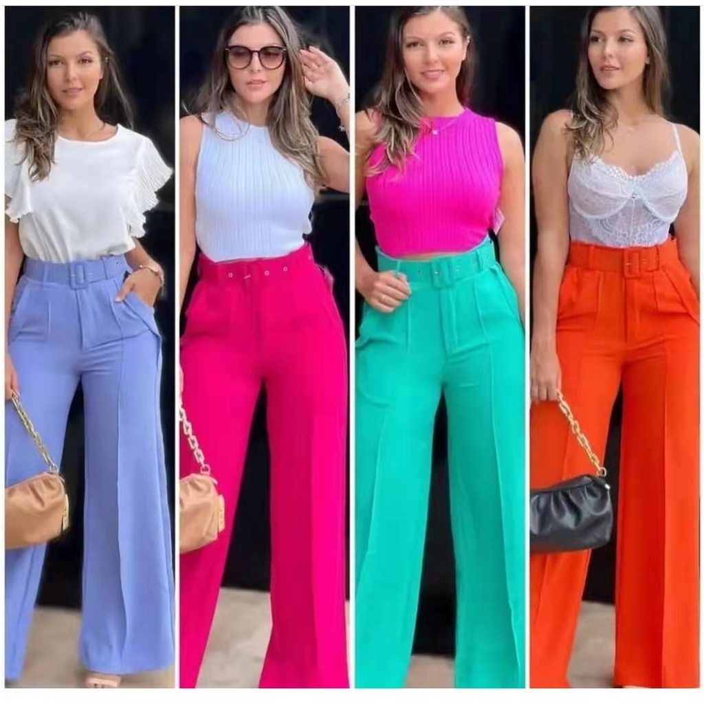 calça pantalona tecido de Duna maravilhosa ela estica com cintura alta(8097)