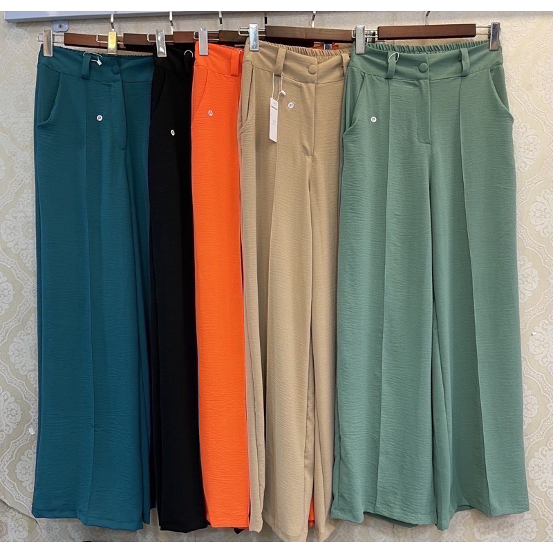 Calça Pantalona cintura alta tecido De Duna social estilo alfaiataria detalhe nas costa de elástico com zíper BOTÃO forrado no mesmo tecido - Várias Cores