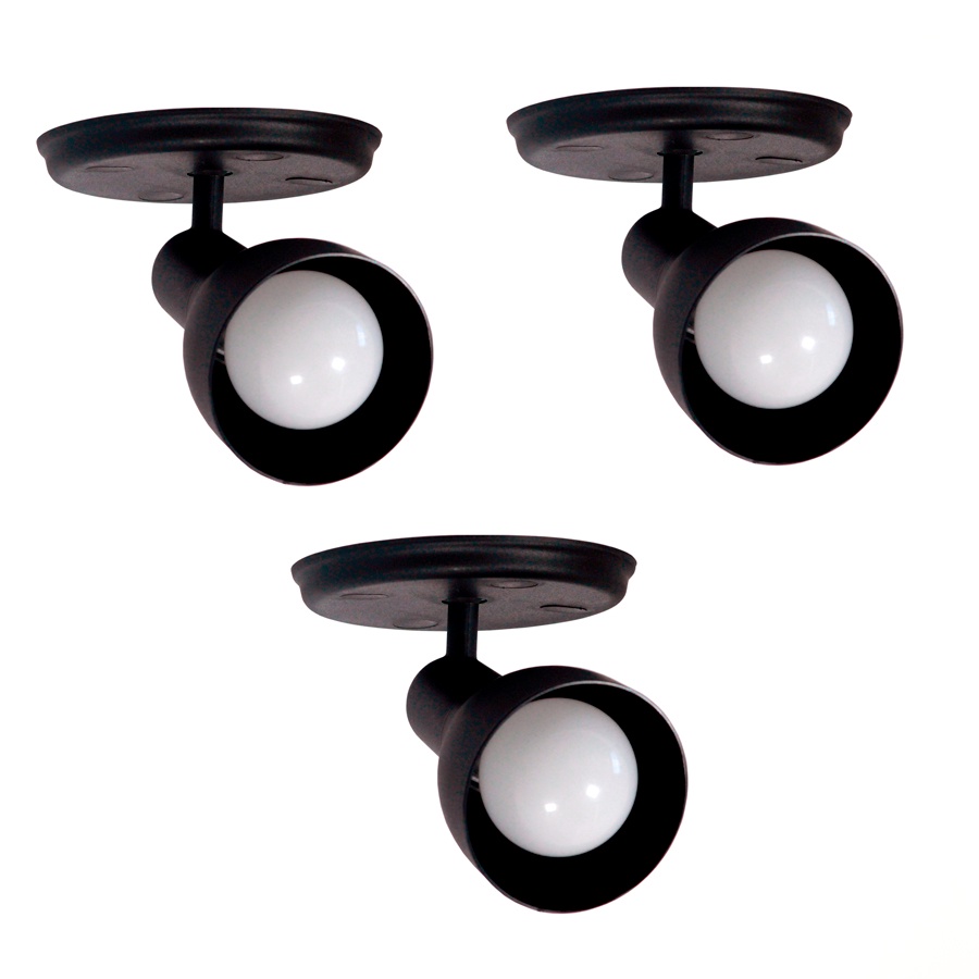 Kit 3 Luminárias Spot de Sobrepor 1 Lâmpada Direcionável E-27 Preto