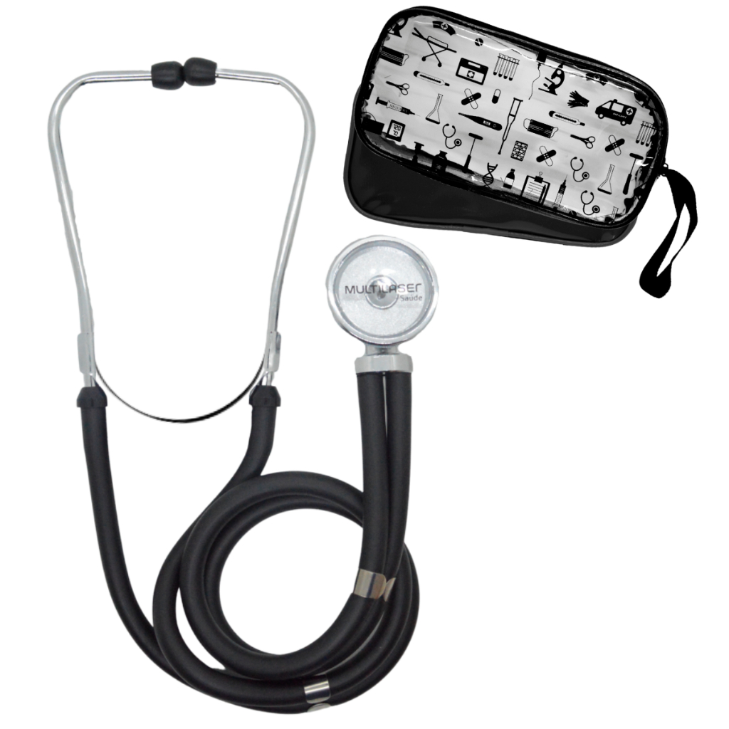 Estetoscópio Rappaport Multilaser Duplo Case Bolsa Protetora Original Multi Profissional Acadêmico Estágio Estudante Enfermagem Medicina Adulto Pediátrico Infantil Criança