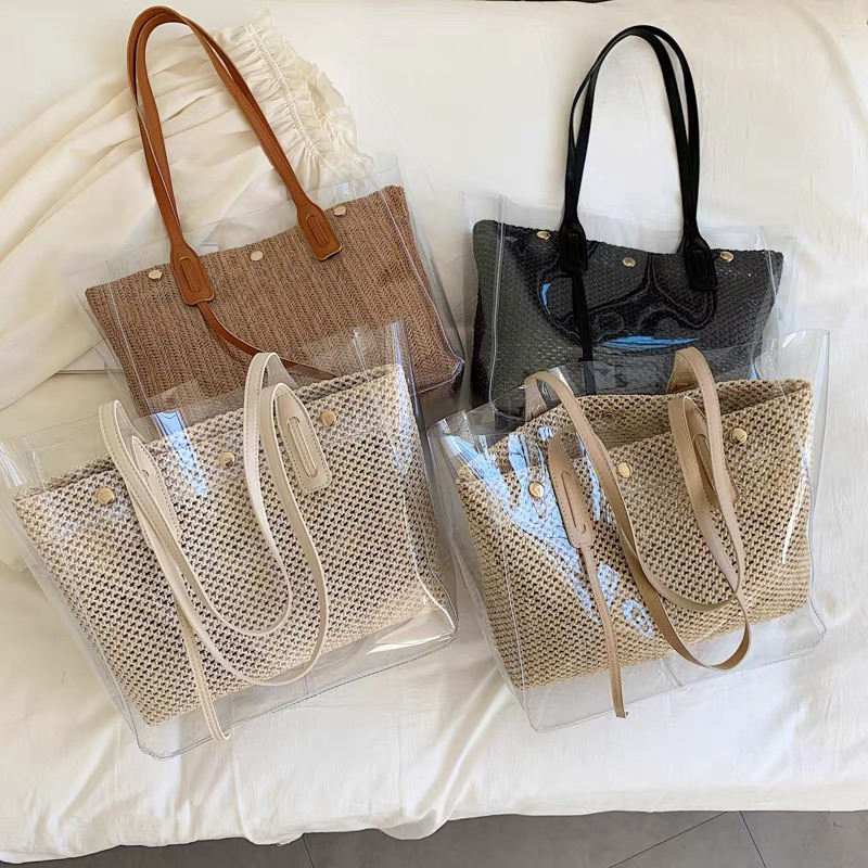 [Bolsas da moda] 2024 Portátil Praia Bolsa Cesta de vegetais Bolsa de palha Grande capacidade Férias