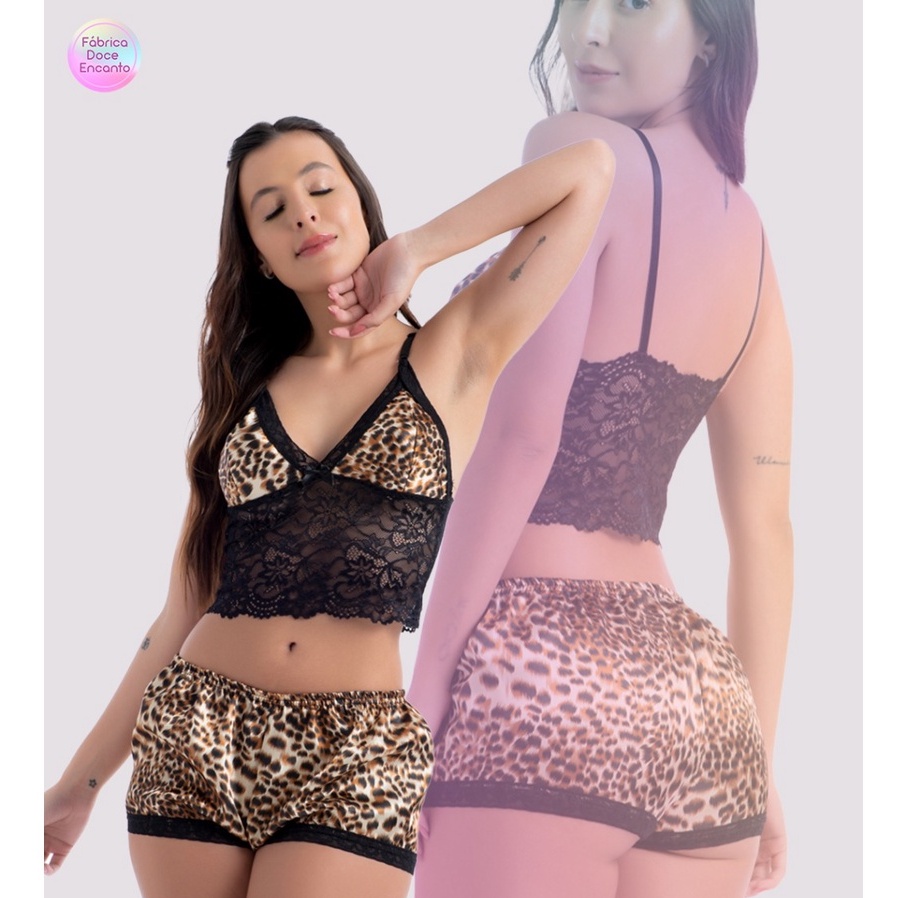 Baby Doll Liso Luxo Sensual Rendado Sensual Feminino Short Pijama