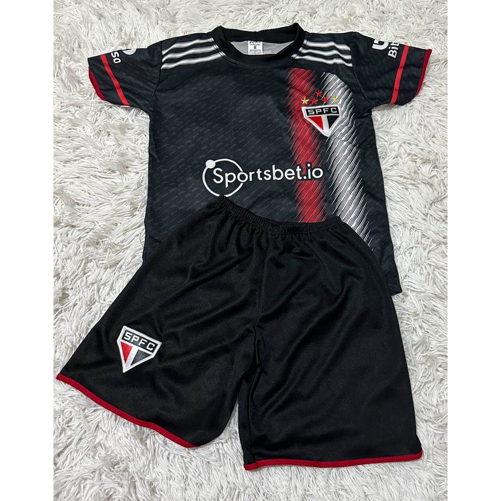 Kit Conjunto infantil uniforme time de futebol São Paulo preto