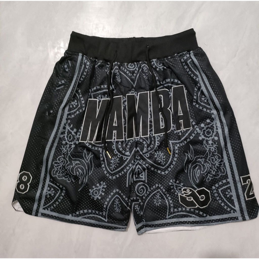 Calções De Bolso Masculinos Los Angeles Lakers Mamba Just Don Jersey Shorts-Preto(printing)