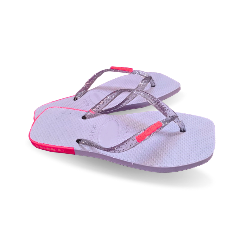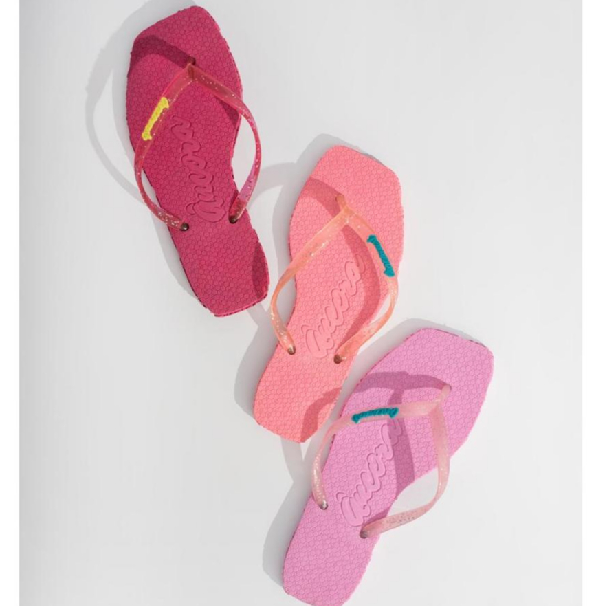 Chinelo Feminino Sandália de Dedo De Borracha Bico Quadrado Com Glíter