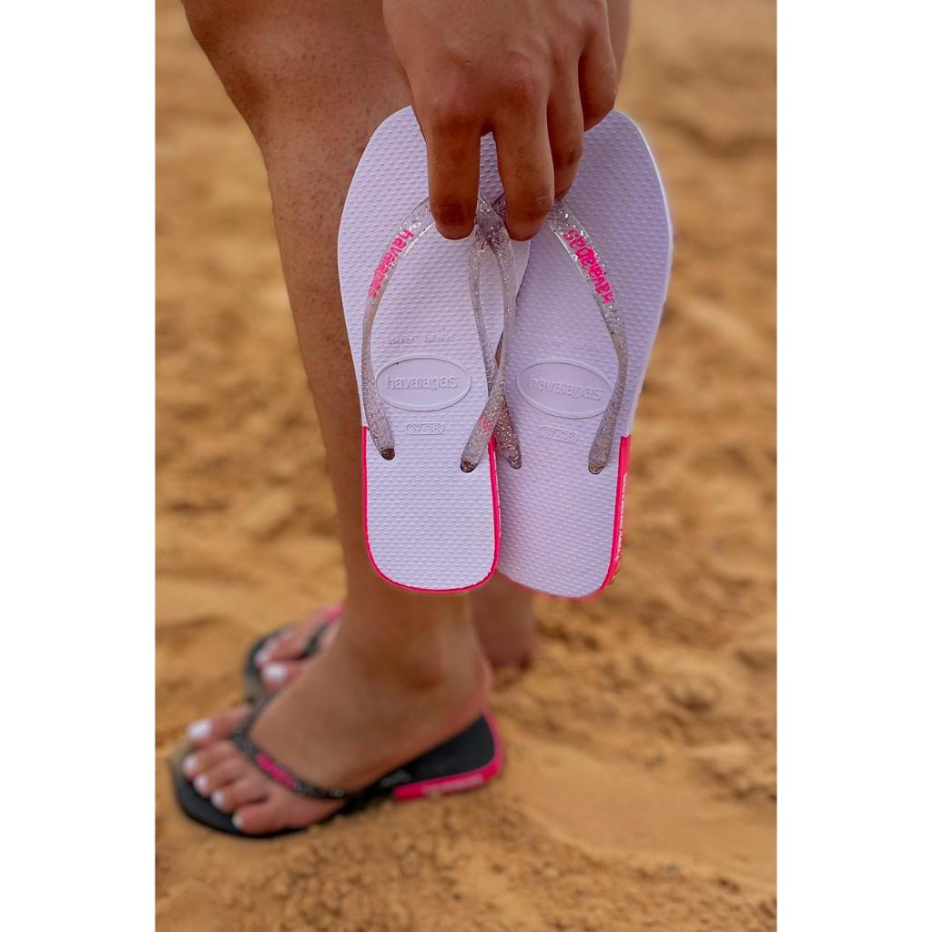 Chinelo Feminino Bico Quadrado com Glitter Brasileirinha Correia transparente Verão Sandalia de Dedo
