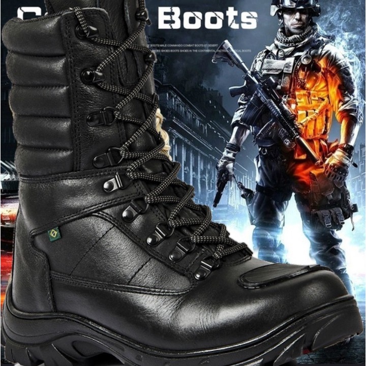 Bota Masculina Cano Alto Couro Legítimo Militar Tática Exército Bope