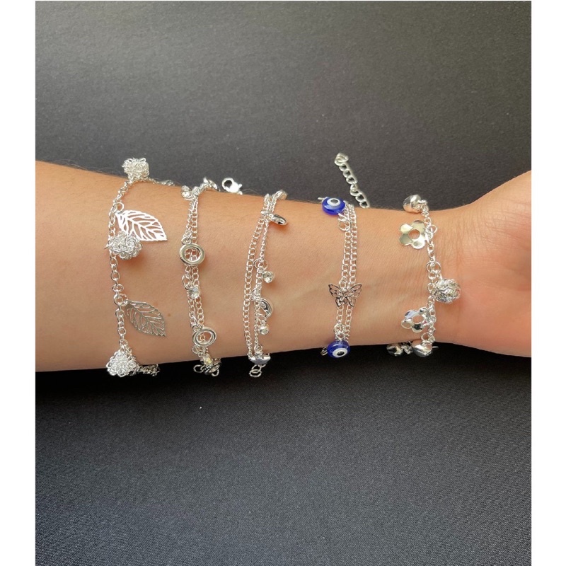 Kit 5 Pulseiras Banhada à Prata 925 - Feminina Sortidos