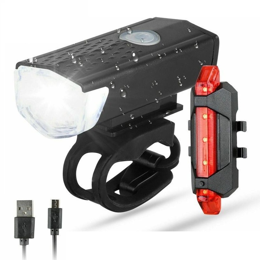 Kit Lanterna Farol 300 Lúmens + Sinalizador Traseiro Para Bike Bicicleta Recarregável Led 3 Funções