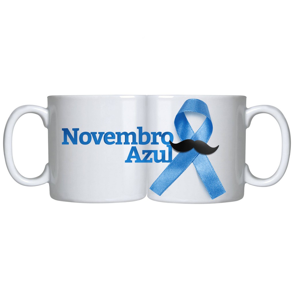 Caneca Branca Novembro Azul Laço Campanha Social Frases