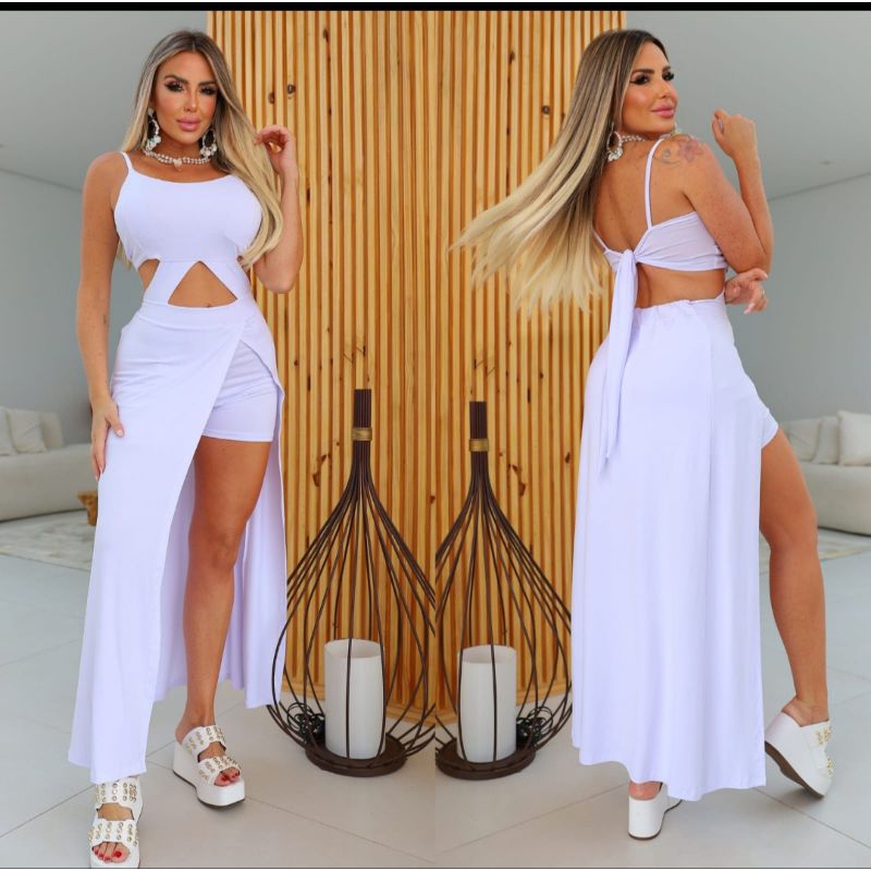 Vestido short Longo Feminino macaquinho com com Fenda e Recortes Elegância festas ano novo