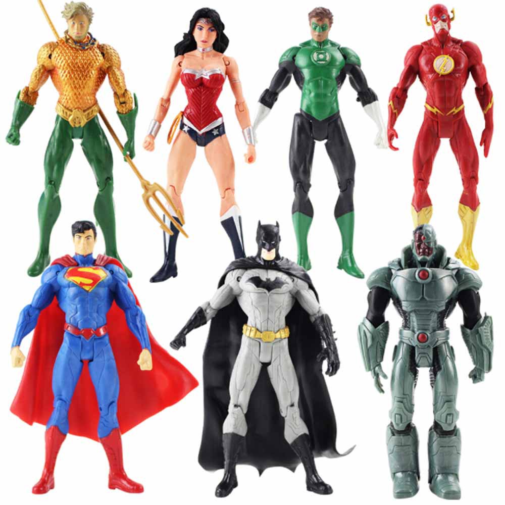 7 Pçs / Lote Liga Da Justiça Ação Figuras Superman Batman Flash Aquaman Mulher Maravilha Cyborg Lanterna Verde Modelo Brinquedos