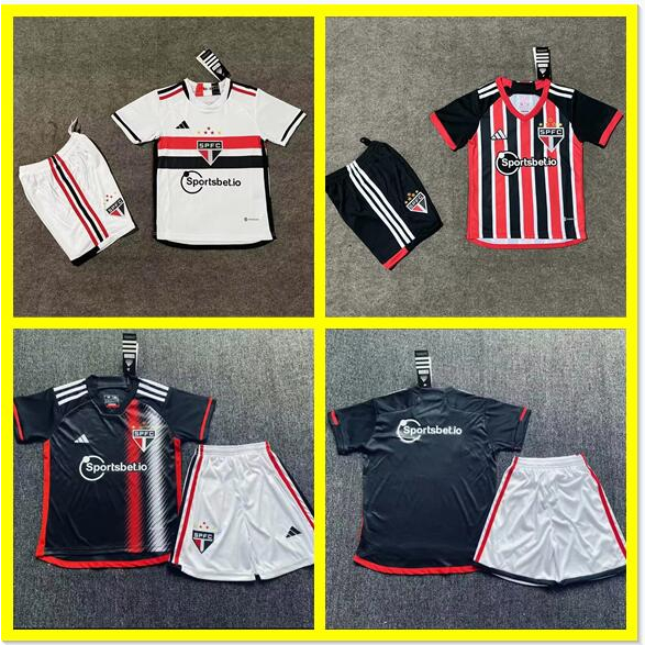 sao paulo kids kit 23-24 Em Casa Fora Terceira Camisa Preta De Futebol