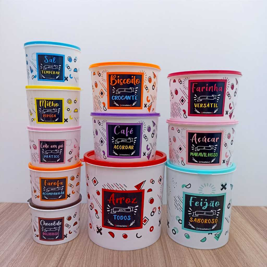 Conjunto mantimentos + kit potes 11 peças; Porta mantimentos + 11 potes tupperware; jogo latas + Kit 11 potes;
