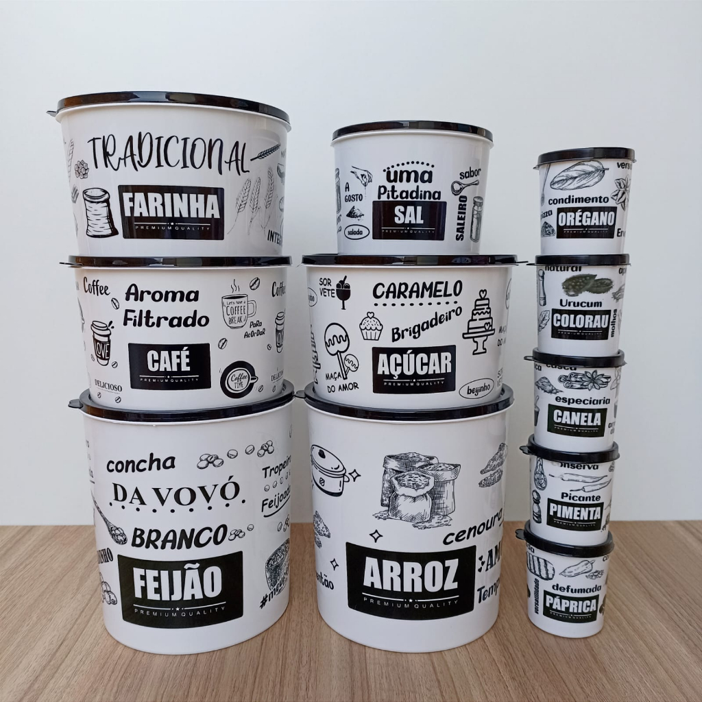 Conjunto 11 Potes Porta Mantimentos e Condimentos Linha Black