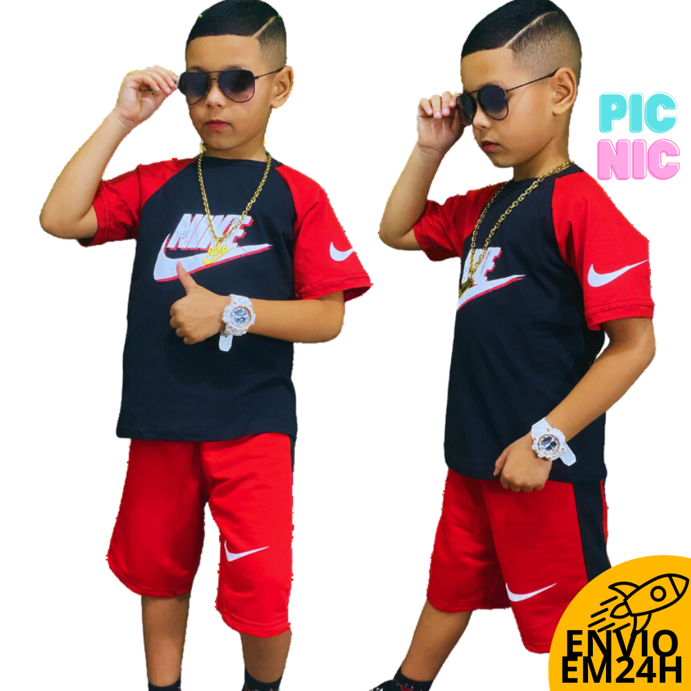 Conjunto Infantil Juvenil Masculino Modelo Exclusivo Kit Camiseta e Bermuda Para Criança