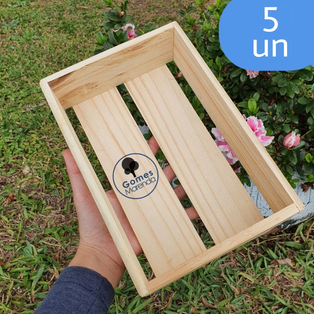 Kit 5 un. Caixote de Madeira Pinus Cesta de Madeira P 24x16x7 cm