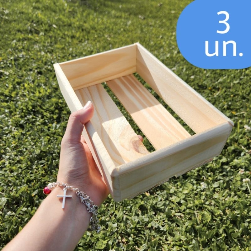 Kit 3 un. Caixote Caixa de Madeira Pinus P 24x16x7cm