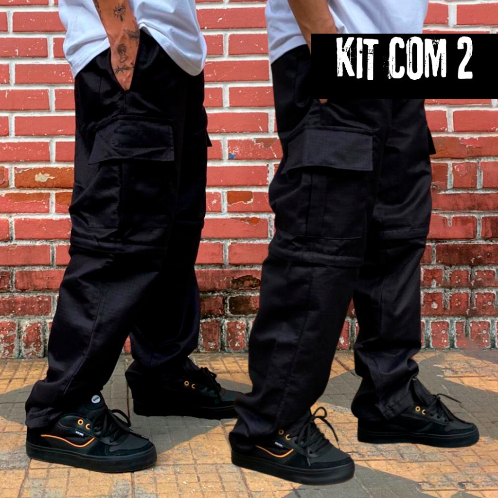 Kit 2 Calça Cargo Unissex - Masculino / Feminino 5 Bolsos Moda Skate Larga - ENVIO IMEDIATO