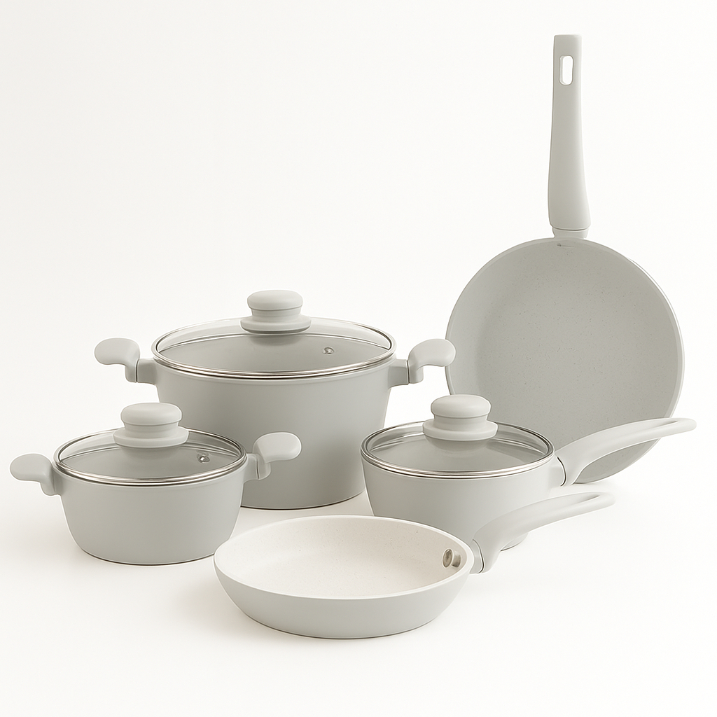 Jogo Conjunto De Panelas 10 Peças Premium Indução Revestimento Cerâmico com Utensílios Frigideira Antiaderentes