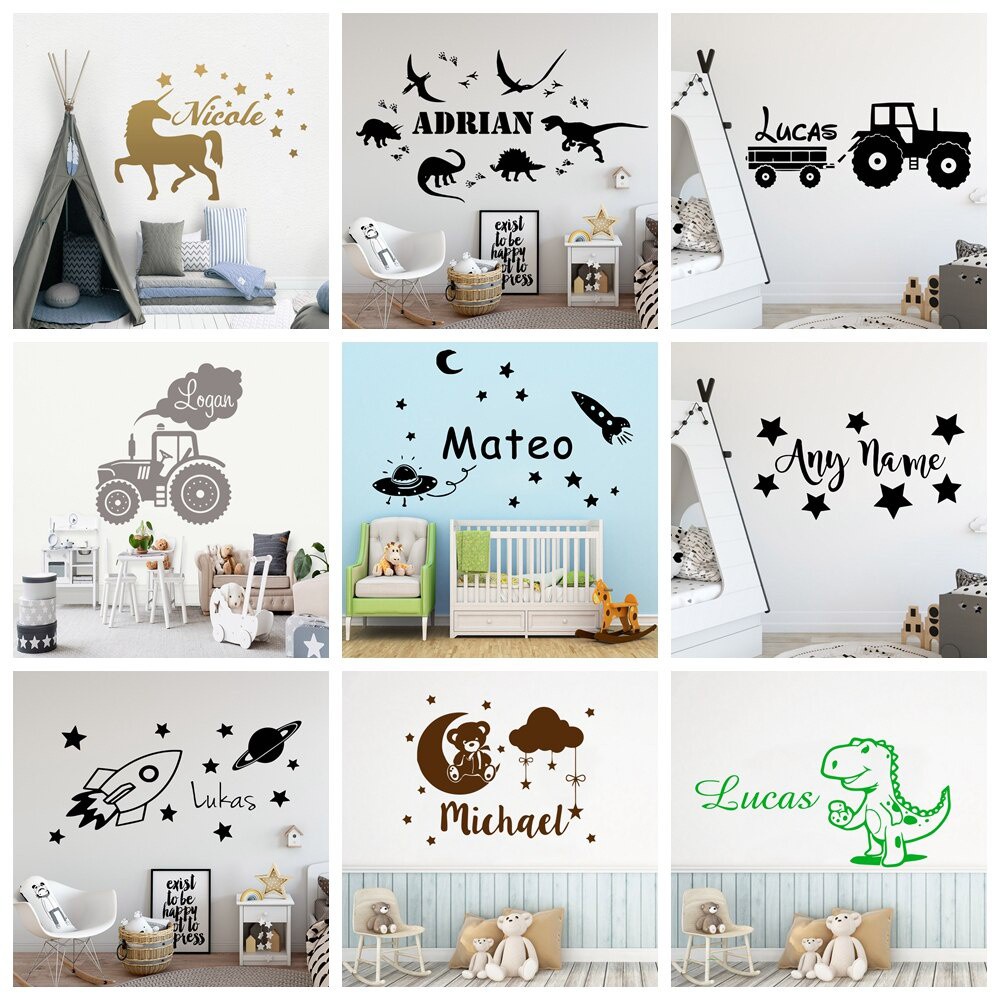 20 Estilo Personalizado Nome Kawaii Adesivos De Parede Decalques De Vinil Para Crianças Decoração Do Quarto Papel
