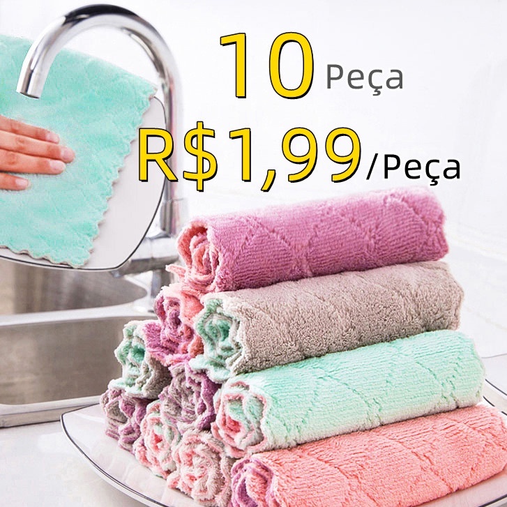 10 Peças Pano De Limpeza 25x15CM Pano Super Absorvente Microfibra Para Limpar De Cozinha Promoção