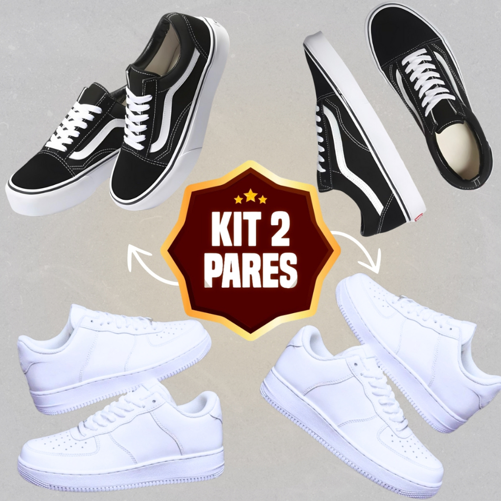 Kit 2 Pares De Tênis Feminino Do 34 Ao 43 Casual Todo Branco e Old School Tradicional Pronta Entrega