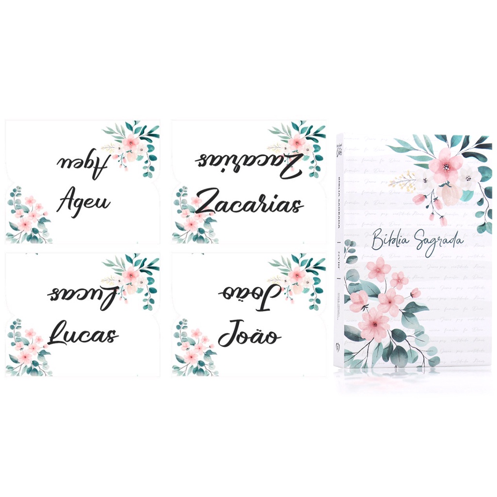 Abas Para Bíblia | Floral Branca | Índice Adesivo Personalizadas Com os Nomes dos Livros - Bible Journaling