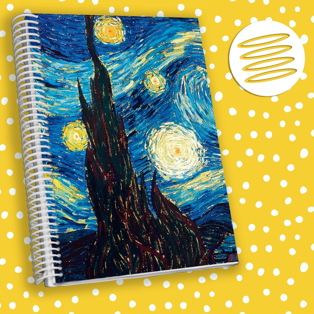 Life Planner Datado 2025 Capa Dura Espiral 15x21cm Semanal Mensal | A Noite Estrelada Van Gogh | FábriCaderno