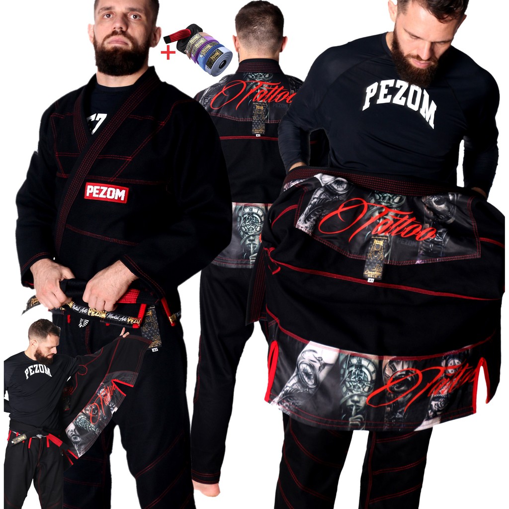 Kimono Jiu Jitsu Trançado 50% Forrado Tattoo Pezom e Faixa