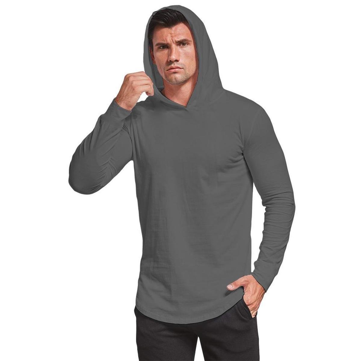 Camiseta Masculina Com Capuz Camisa Manga Longa