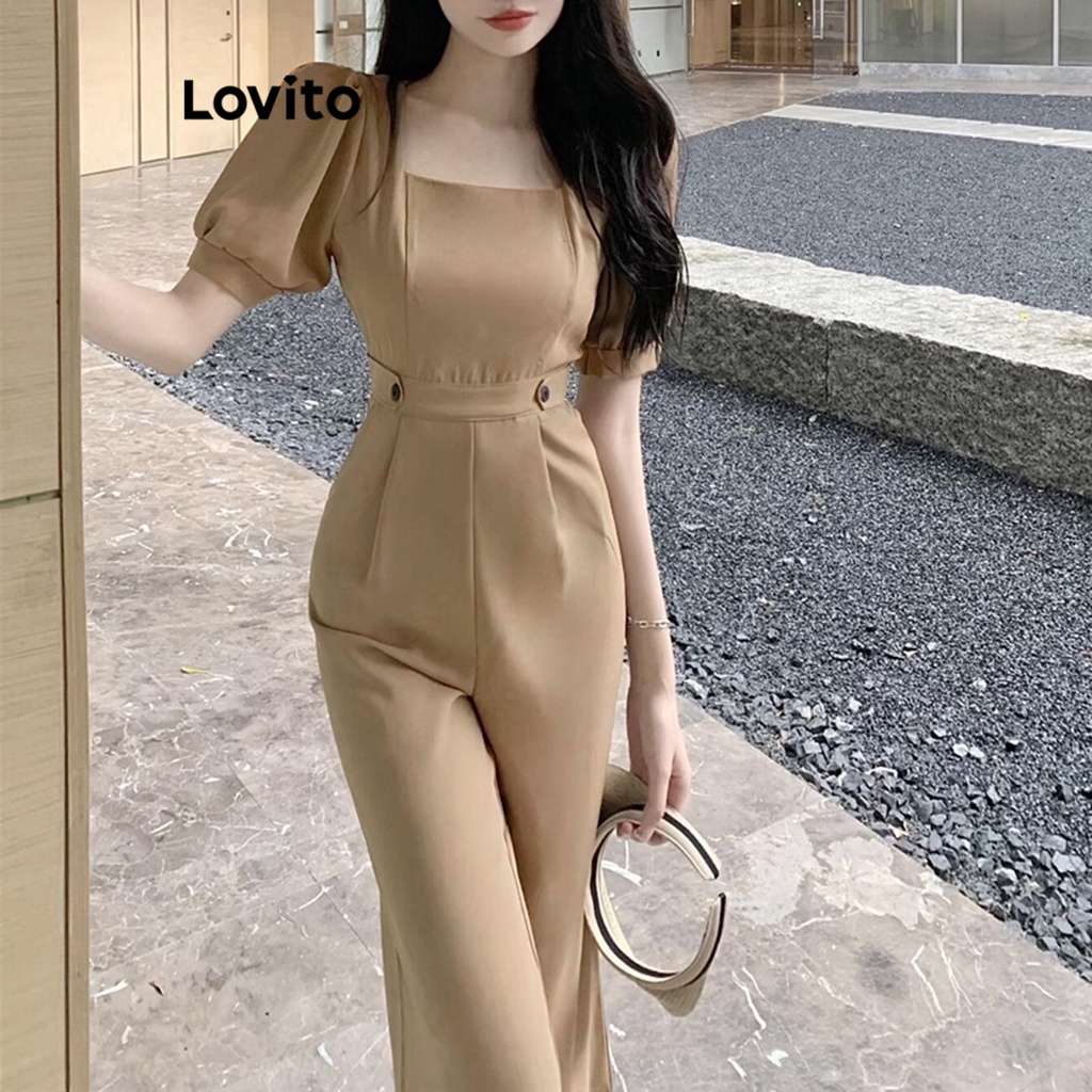 Lovito Macacões Básicos Lisos Casuais Para Mulheres L68ED209 (Cáqui)