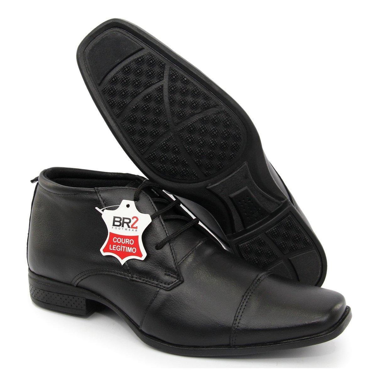 Sapato Social Masculino Bico Fino Cano Alto Couro Legítimo Sola em Borracha