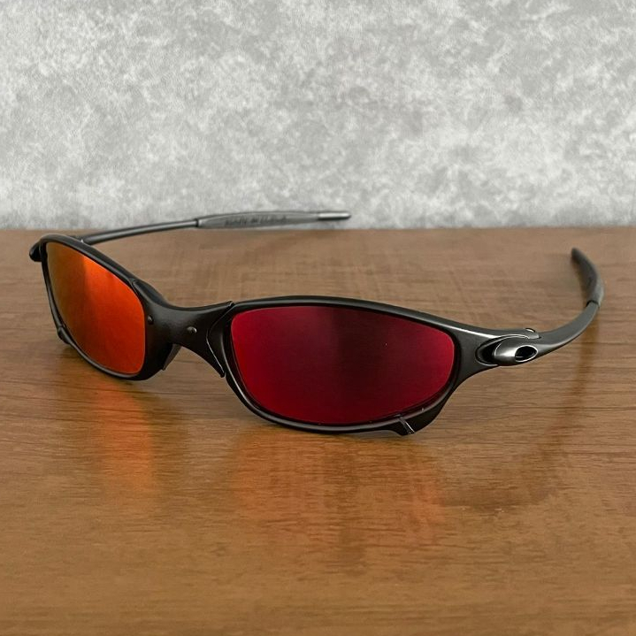 Óculos de Sol Juliet Dark Rubi carbon metal importado preto lente vermelho escuro espelhado