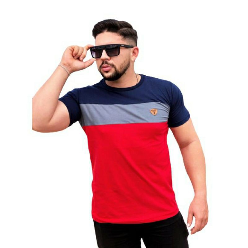 Camisa Camiseta Masculina Fio 30.1 Penteado listrada Colorida