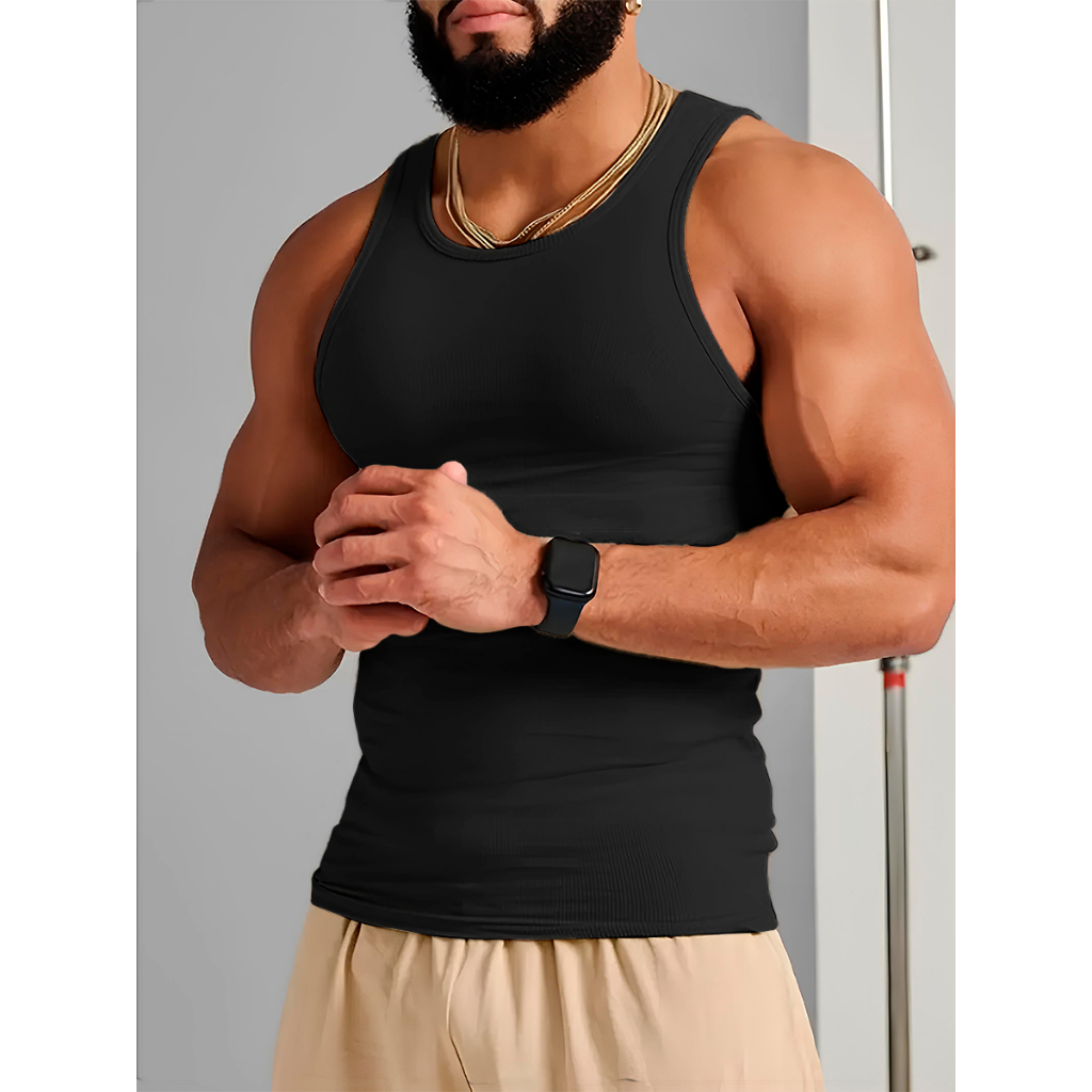 Regata Americana Masculina Ribana Canelada- Camiseta Básica Justa- Estilo Hip Hop Promoção.